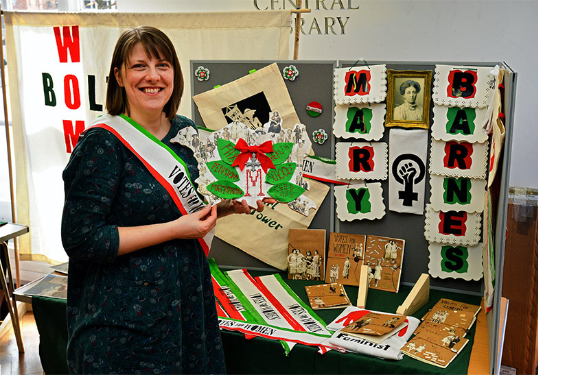 The group researched Mary Barnes and decorated a giant jigsaw piece shaped as the Bolton borough with cross-stitch they had done based on the issues Barnes was most passionate about. For information about Mary Barnes click here.