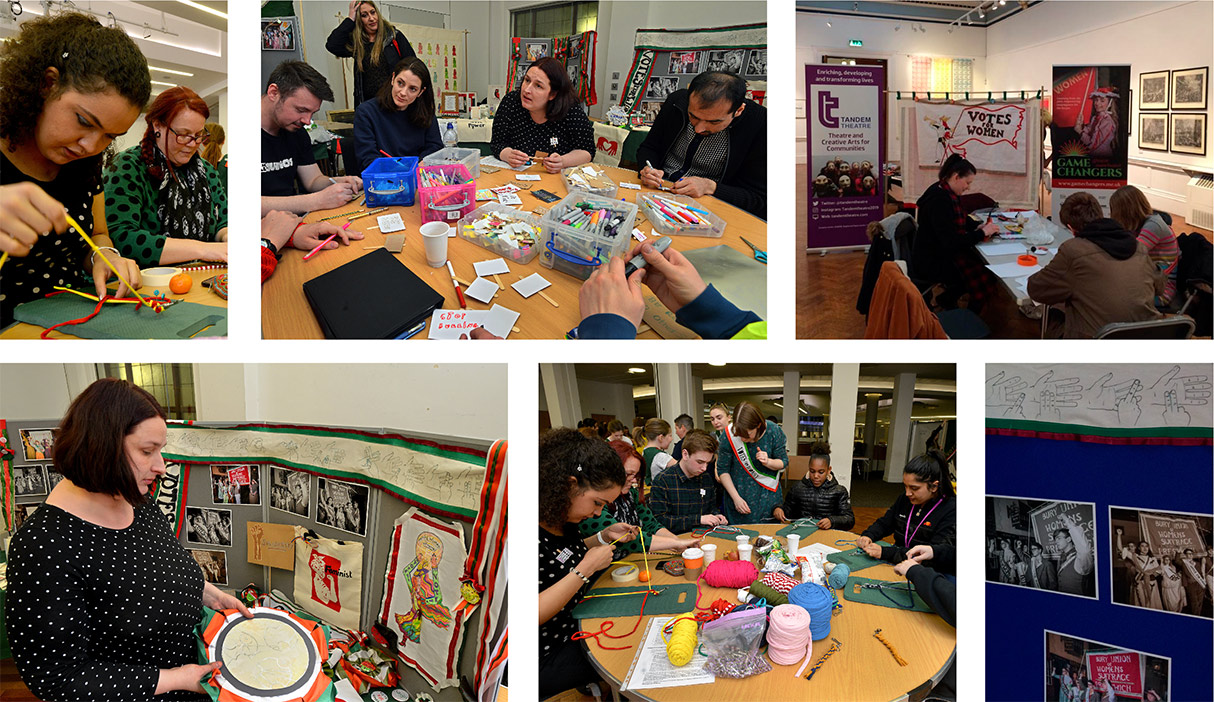 For International Women’s Day the group displayed all their fantastic work at Bury Art Museum and their lead artist ran suffragist themed making activities throughout the day.