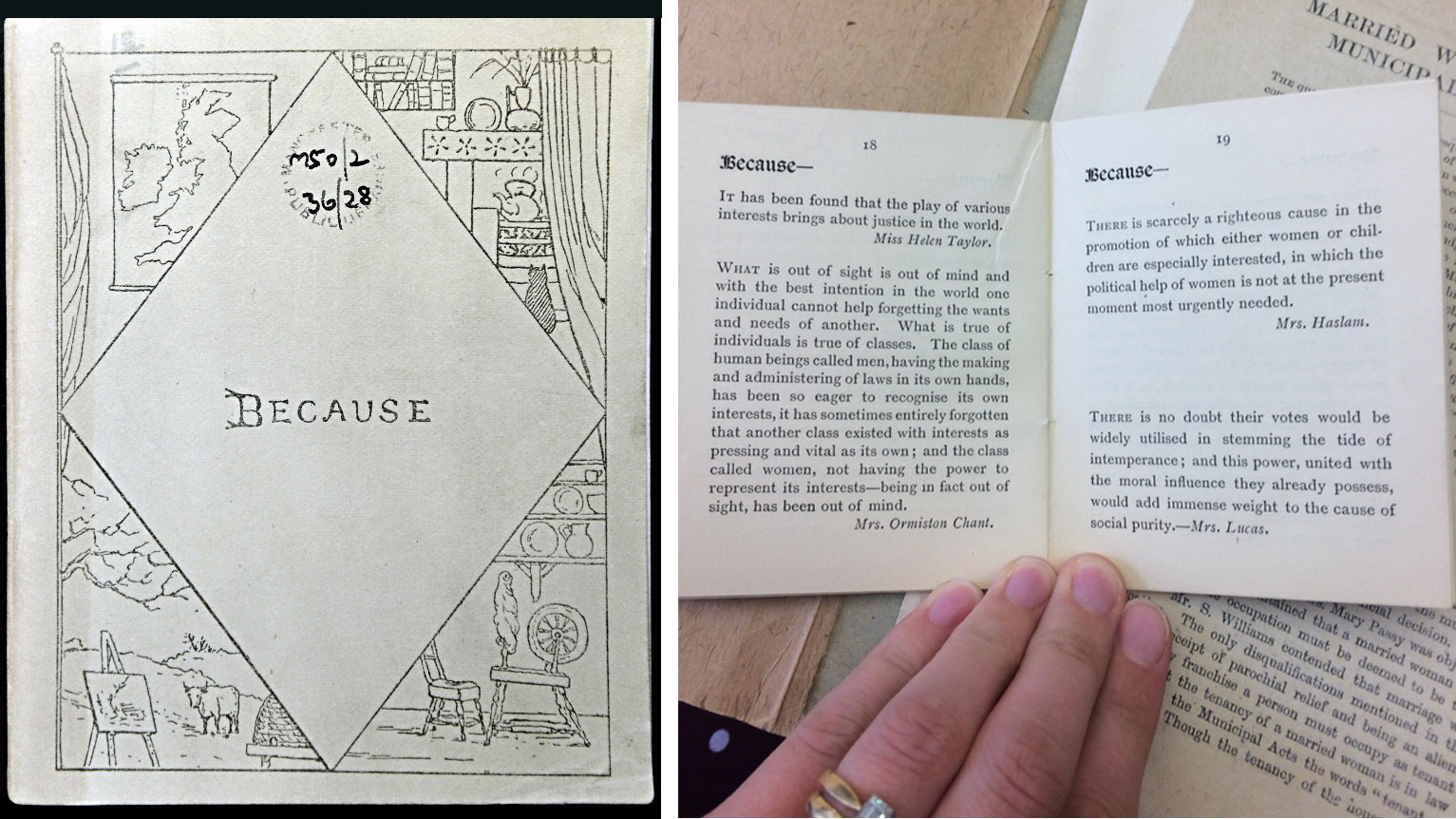 They also had these listed points feature in their ‘Because’ booklets that gave reasons for women’s suffrage in a small A5 booklet that could fit in a pocket.