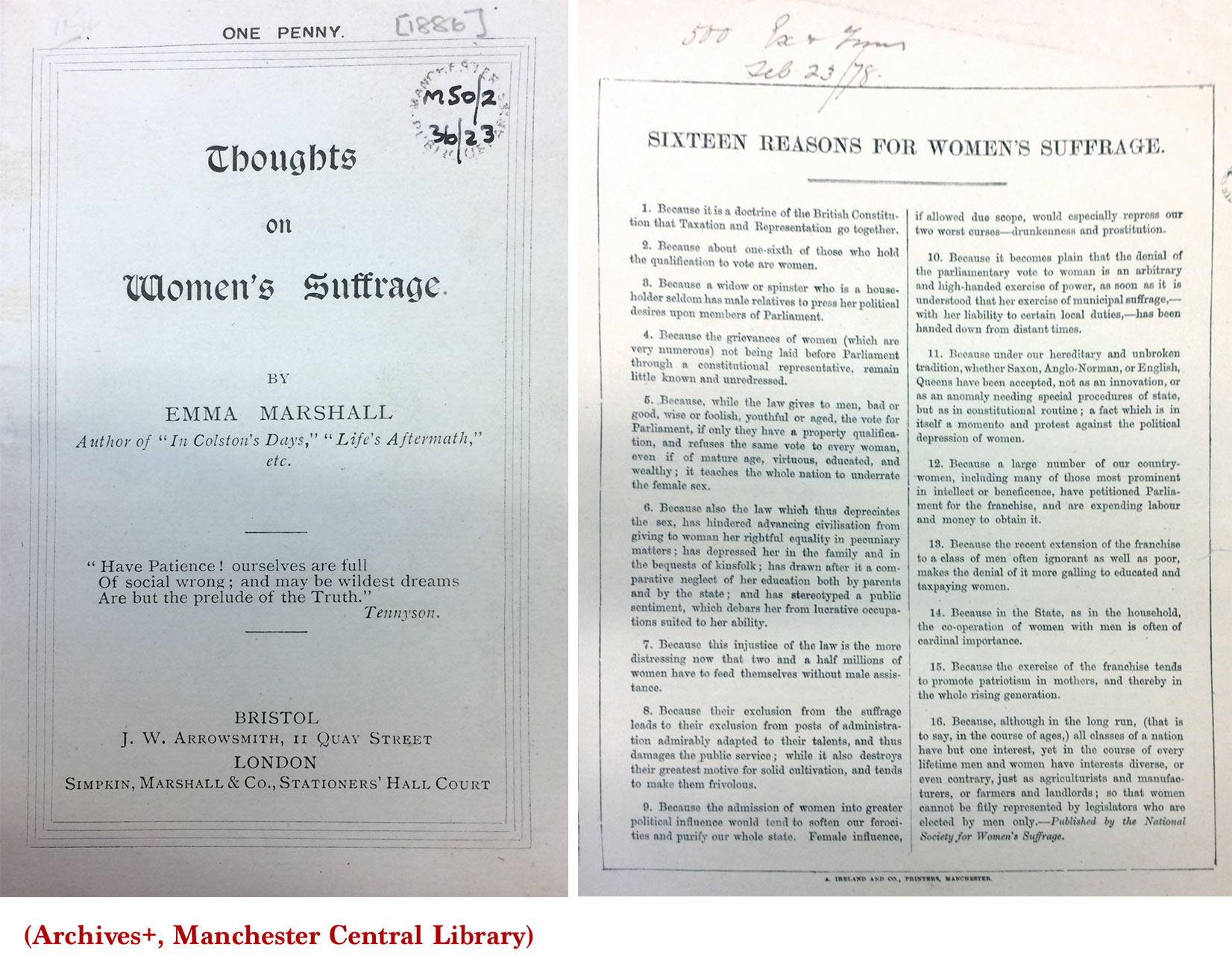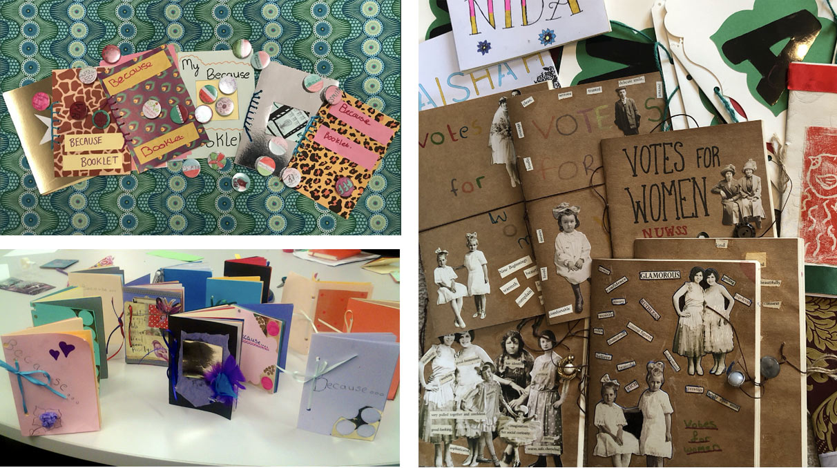 The Game Changer groups were able to handle these booklets and pamphlets when they visited Archives+ at Manchester Central Library. They then created their own Because Booklets including their own reasons why women should have been given the vote.
