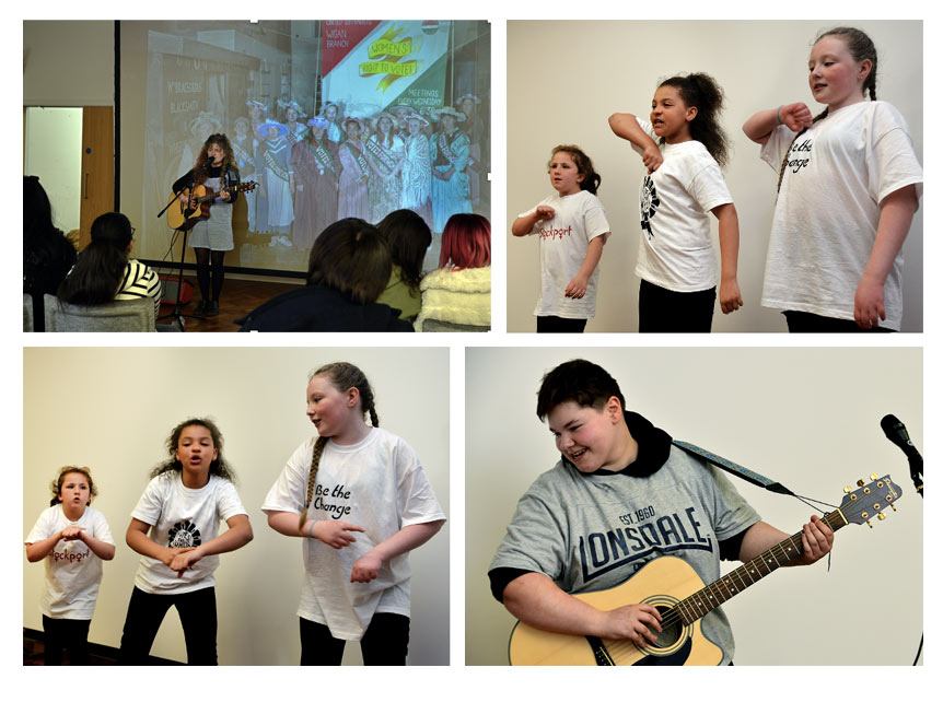 The Game Changer groups worked with musician Holly Phelps (known professionally as IORA) to write their own songs and create an anthem. Phelps devised a call and response song based on lyrics written by the young people, this was then sang for the audience at the Bazaar to join in, establishing that communal singing so important to the suffragists. The young people also performed live for the Bazaar event playing their own instruments and showcasing their own choreography: