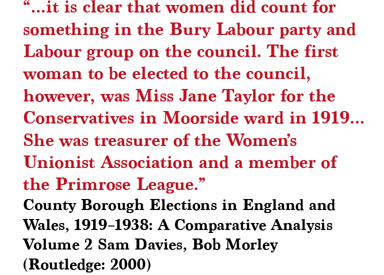 It was quite a challenge to allocate the Bury group a suffragist figure to focus on. There is evidence of strong female political involvement in Bury once some women received the vote in 1918. Bury had the highest proportion of women standing to be Labour councillors compared other boroughs.