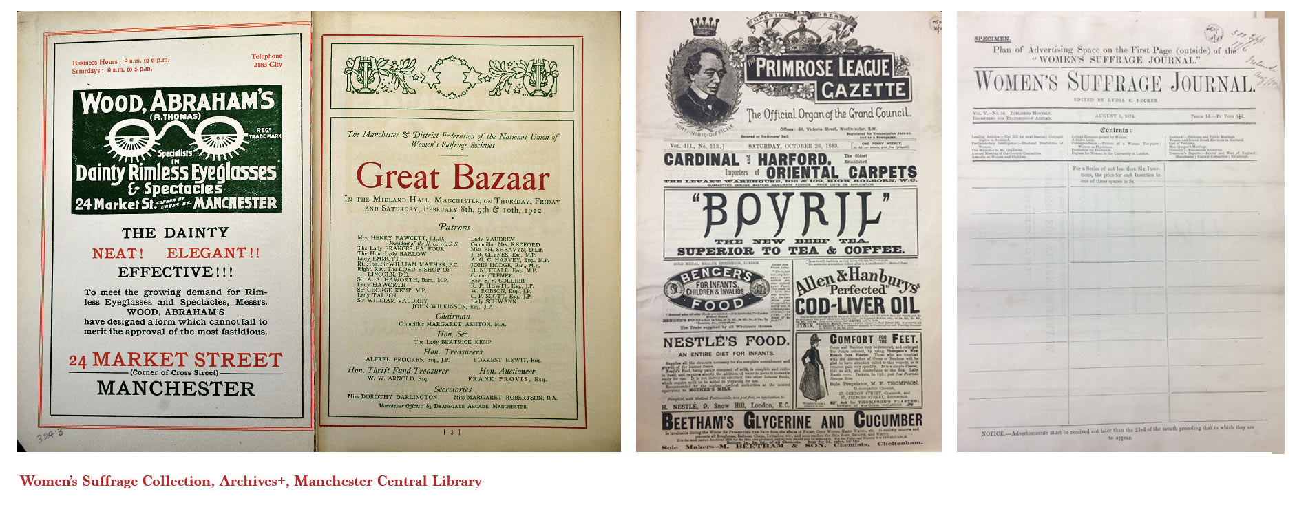 From other items from the women’s suffrage archives we can see how a major source of generating income would be through advertising revenue. Despite most of society being reluctant to accept the progress in women’s liberation, businesses evidently saw the reach the suffrage campaign had. Businesses would then pay to advertise their product in the suffragist’s booklets and journals.