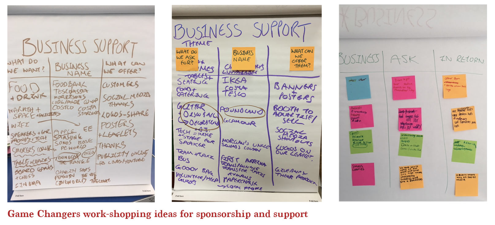 Focusing on the Bazaar event that the Game Changers would be co-leading, The Game Changers were able to explore contemporary ways of corporate engagement. Lucy Green who has professional experience engaging corporate sponsorship for charitable causes led these workshops. First the groups deliberated what key products they wanted at the event, e.g. Food and drink. Then, they identified businesses that could provide these and what the Bazaar event might be able to offer to promote that company. Just like the suffragist’s this could consist of advertising and PR. The groups then practised how they could pitch their sponsorship ideas to these businesses in a lively mock ‘Dragon’s Den’.