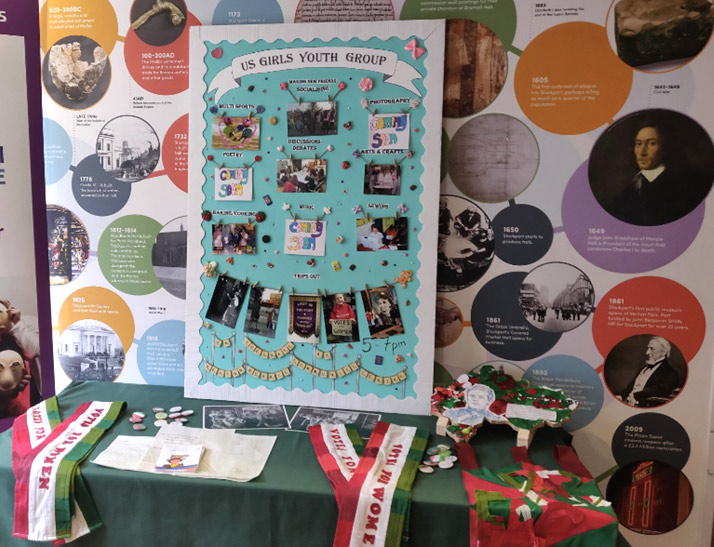 For International Women’s Day the group displayed all their fantastic work at Stockport Staircase Museum and their lead artist ran suffragist themed making activities throughout the day.